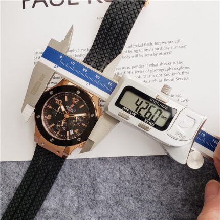 Hublot Big Bang Chronograph – 42mm Movement: Quartz Case Size: 42mm Strap: Black rubber strap Grade: AAA (High-Quality Replica) Delivery: