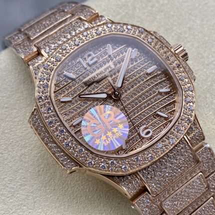 Patek Philippe Aquanaut with Diamonds Encrusted CasingGenuine Swiss ETA 2836-2 Automatic Movement with Gold Plated RotorBlack Colored Textured Dial with