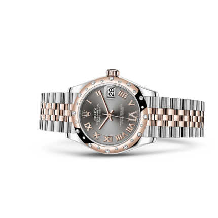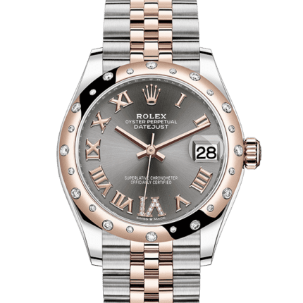 Reference:278341RBRModel case:Oyster. 31 mm. Oystersteel. Everose gold and diamondsBracelet:Jubilee. five-piece linksDial:Rhodium set with diamondsBezel:Domed. set with diamonds