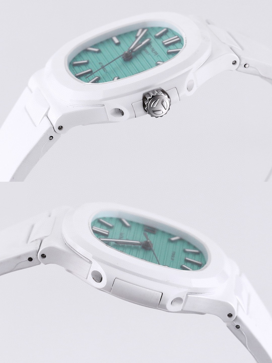 AET remould Patek Philippe ceramic dial with strap is a superclone watch. It is made with the same materials and to the same specifications as the genuine Patek Philippe Nautilus 5711/1A-018, except for the movement, which is a cloned movement instead of the genuine Patek Philippe Calibre 26-330 S C.