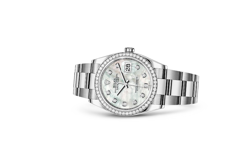 Model case:Oyster. 36 mm. Oystersteel. white gold and diamonds